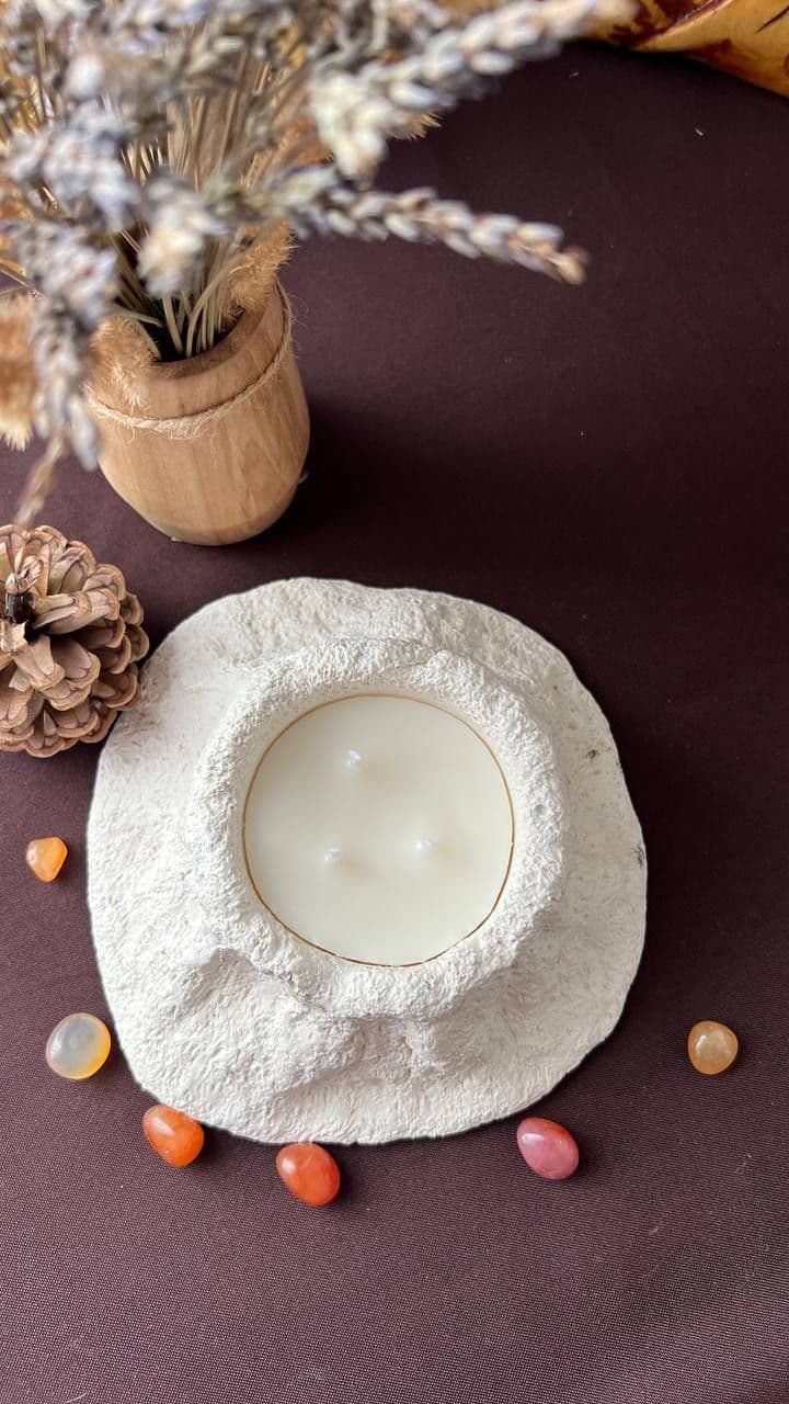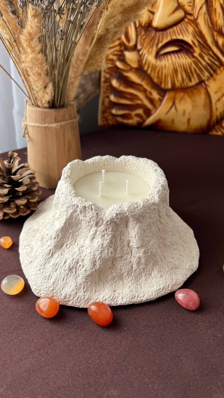 Свеча Вулкан. Уникальное авторское изделие. Натуральный соевый воск. Хлопковый фитиль. Гипсовое кашпо. Свеча 110 мл. Окрас может быть исполнен по вашему запросу (Примеры в товаре Кашпо)